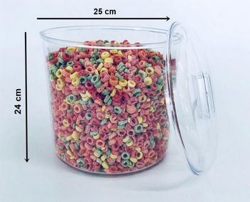 Pote 1,5LT – 33x28x32 – 3 KGPote 3,3LT – 54x36x32 – 5KGPote 7,4LT – 63x43x49 – 8 KGPote 12LT – 78x53x73 – 13 KGPote 13,8LT – 94x45x58 – 15 KGPote 36LT – 45x33x14 – 3,8 KGFardo de conchas ..100 ML – 2kFardo de conchas 275 ml – 3kFardo de conchas 600 ml – 4k